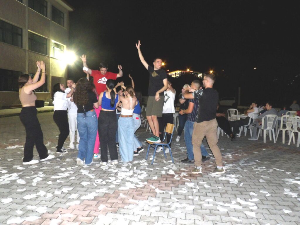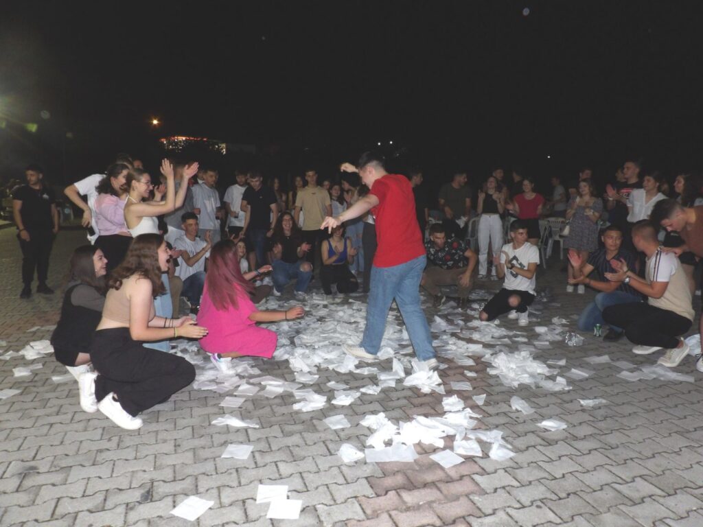Μέσα σε ένα έντονα συγκινησιακό κλίμα, μαθητές και καθηγητές αναπόλησαν στιγμές των 3 τελευταίων δύσκολων σχολικών ετών και διασκέδασαν από κοινού υπό τη συνοδεία μουσικής. Κέφι, χορός, τραγούδι και αστεία κατέκλυσαν τον χώρο.